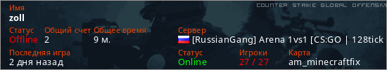 Играет на Counter Strike Global Offensive сервере. Страна: РоссияПервый раз замечен 15:01 21.12.2025