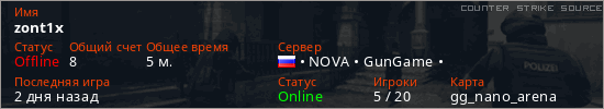 Играет на Counter Strike Source сервере. Страна: РоссияПервый раз замечен 21:29 21.04.2026