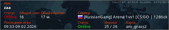 Играет на Counter Strike Global Offensive сервере. Страна: РоссияПервый раз замечен 09:44 08.02.2026