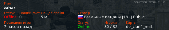 Играет на Counter Strike 1.6 сервере. Страна: РоссияПервый раз замечен 13:12 13.03.2026