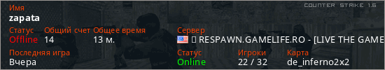 Играет на Counter Strike 1.6 сервере. Страна: СШАПервый раз замечен 17:01 26.02.2026