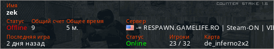 Играет на Counter Strike 1.6 сервере. Страна: СШАПервый раз замечен 02:59 01.03.2026