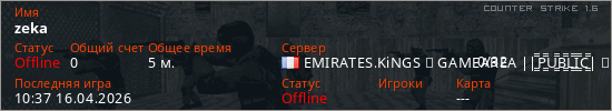 Играет на Counter Strike 1.6 сервере. Страна: ФранцияПервый раз замечен 10:22 16.04.2026