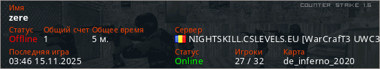 Играет на Counter Strike 1.6 сервере. Страна: РумынияПервый раз замечен 03:42 15.11.2025