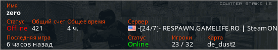 Играет на Counter Strike 1.6 сервере. Страна: СШАПервый раз замечен 15:43 23.02.2025