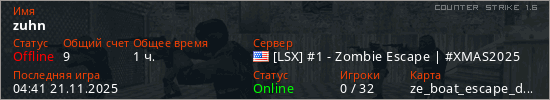 Играет на Counter Strike 1.6 сервере. Страна: СШАПервый раз замечен 05:18 13.10.2025