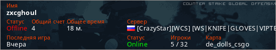 Играет на Counter Strike Global Offensive сервере. Страна: РоссияПервый раз замечен 15:16 06.03.2026