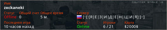 Играет на Counter Strike 1.6 сервере. Страна: РоссияПервый раз замечен 13:50 31.03.2026