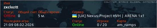 Играет на Counter Strike Global Offensive сервере. Страна: УкраинаПервый раз замечен 21:04 08.02.2026