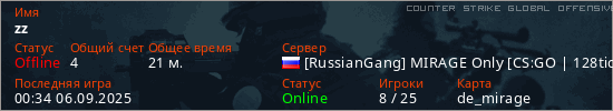 Играет на Counter Strike Global Offensive сервере. Страна: РоссияПервый раз замечен 16:45 02.12.2024
