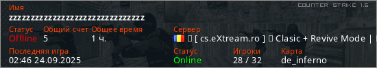 Играет на Counter Strike 1.6 сервере. Страна: РумынияПервый раз замечен 18:21 10.08.2025