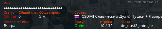 Последний раз был в сети Вчера Игрок с таким ником замечен на 22 серверах