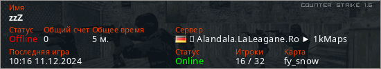 Играет на Counter Strike 1.6 сервере. Страна: ГерманияПервый раз замечен 10:14 11.12.2024