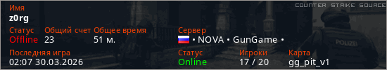 Играет на Counter Strike Source сервере. Страна: РоссияПервый раз замечен 09:50 28.02.2026