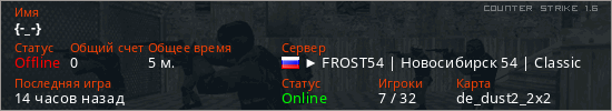 Последний раз был в сети 12 часов назад Игрок с таким ником замечен на 8 серверах