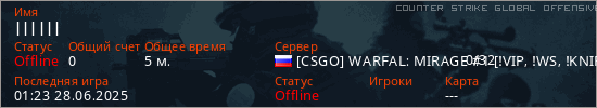 Играет на Counter Strike Global Offensive сервере. Страна: РоссияПервый раз замечен 01:08 28.06.2025