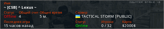 Играет на Counter Strike 1.6 сервере. Страна: УкраинаПервый раз замечен 18:21 16.02.2026