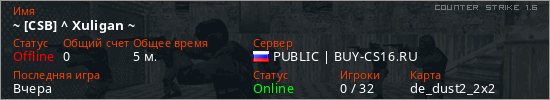 Играет на Counter Strike 1.6 сервере. Страна: РоссияПервый раз замечен 20:41 08.03.2026