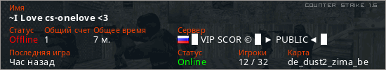 Играет на Counter Strike 1.6 сервере. Страна: РоссияПервый раз замечен 16:01 30.01.2026
