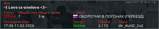 Играет на Counter Strike 1.6 сервере. Страна: РоссияПервый раз замечен 17:36 11.02.2026