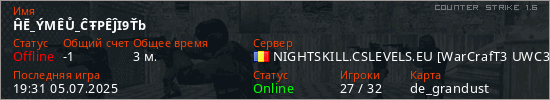 Последний раз был в сети 19:31 05.07.2025 Игрок с таким ником замечен на 15 серверах