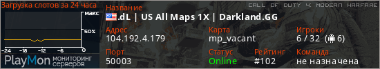 .dL | US All Maps 1X | Darkland.GG представлен в виде сервера код 4. Из всех имеющихся на сайте модификаций игровых серверов, вам может понравиться GunGame серверы cod4. А для быстрой навигации по всем меткам - используйте главную страницу игры Call of Duty 4: Modern Warfare.