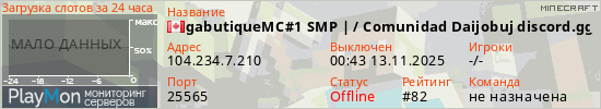 ID: 70788Ссылка: https://playmon.ru/server/104.234.7.210:25565