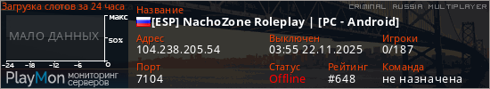 ID: 72845Ссылка: https://playmon.ru/server/104.238.205.54:7104