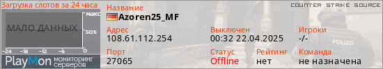Azoren25_MF представлен в виде сервера ксс. Из всех имеющихся на сайте модификаций игровых серверов, вам может понравиться DeathRun серверы css. А для быстрой навигации по всем меткам - используйте главную страницу игры Counter Strike Source.