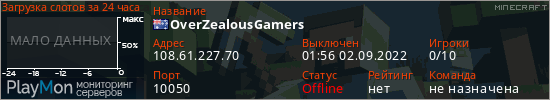 Общая информация ID: 50656 Ссылка: https://playmon.ru/server/108.61.227.70:10050 Версия: 1.16.5 Адрес: 108.61.227.70:10050 Игроки: 0/10 Статус: Выключен Владелец: Не определён