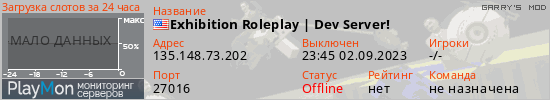 Общая информация ID: 57905 Ссылка: https://playmon.ru/server/135.148.73.202:27016 Адрес: 135.148.73.202:27016 Игроки: 0/8 Статус: Выключен Владелец: Не определён