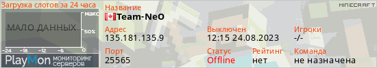 Общая информация ID: 47690 Ссылка: https://playmon.ru/server/135.181.135.9:25565 Версия: 1.8.x-1.13.x, 1.15.x, 1.16.x, 1.17.x, 1.18.x, 1.19.x, 1.20.x Адрес: 135.181.135.9:25565 Игроки: 0/20 Статус: Выключен Владелец: Не определён