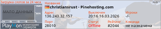 ID: 83116Ссылка: https://playmon.ru/server/136.243.32.157:28010