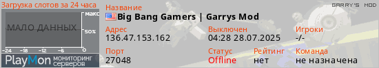 Общая информация ID: 66531 Ссылка: https://playmon.ru/server/136.47.153.162:27048 Адрес: 136.47.153.162:27048 Игроки: 0/20 Статус: Выключен Владелец: Не определён