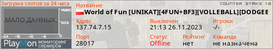 World of Fun [UNIKAT][4FUN+BF3][VOLLEBALL][DODGEBALL]@LiveServer.pl представлен в виде сервера кс 1.6. Из всех имеющихся на сайте модификаций игровых серверов, вам может понравиться Surf серверы cs. А для быстрой навигации по всем меткам - используйте главную страницу игры Counter Strike 1.6.
