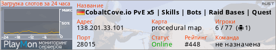 ID: 79102Ссылка: https://playmon.ru/server/138.201.33.101:28015
