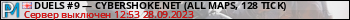 DUELS #9 — CYBERSHOKE.NET (ALL MAPS, 128 TICK) представлен в виде сервера кс го. Из всех имеющихся на сайте модификаций игровых серверов, вам может понравиться Knife серверы csgo. А для быстрой навигации по всем меткам - используйте главную страницу игры Counter Strike Global Offensive.