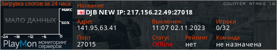 DJB NEW IP: 217.156.22.49:27018 представлен в виде сервера кс 1.6. Из всех имеющихся на сайте модификаций игровых серверов, вам может понравиться Knife серверы cs. А для быстрой навигации по всем меткам - используйте главную страницу игры Counter Strike 1.6.