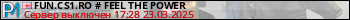 FUN.CS1.RO # FEEL THE POWER представлен в виде сервера кс 1.6. Из всех имеющихся на сайте модификаций игровых серверов, вам может понравиться Knife серверы cs. А для быстрой навигации по всем меткам - используйте главную страницу игры Counter Strike 1.6.