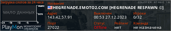 Общая информация ID: 61975 Ссылка: https://playmon.ru/server/143.42.57.91:27022 Адрес: 143.42.57.91:27022 Игроки: 0/32 Статус: Выключен Владелец: Не определён