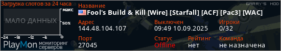Общая информация ID: 66428 Ссылка: https://playmon.ru/server/144.48.104.107:27045 Адрес: 144.48.104.107:27045 Игроки: 0/32 Статус: Выключен Владелец: Не определён