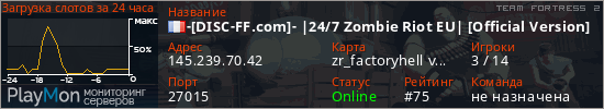 -[DISC-FF.com]- |24/7 Zombie Riot EU| [Official Version] представлен в виде сервера тф2. Из всех имеющихся на сайте модификаций игровых серверов, вам может понравиться JailBreak серверы tf2. А для быстрой навигации по всем меткам - используйте главную страницу игры Team Fortress 2.