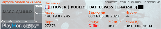▦ HOVER | PUBLIC | BATTLEPASS | [Season 3] ██ представлен в виде сервера кс го. Из всех имеющихся на сайте модификаций игровых серверов, вам может понравиться Hide'n'Seek серверы csgo. А для быстрой навигации по всем меткам - используйте главную страницу игры Counter Strike Global Offensive.