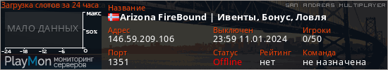 Общая информация ID: 61348 Ссылка: https://playmon.ru/server/146.59.209.106:1351 Версия: 0.3.7-R2 Адрес: 146.59.209.106:1351 Игроки: 0/50 Статус: Выключен Владелец: Не определён