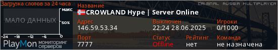 Общая информация ID: 65886 Ссылка: https://playmon.ru/server/146.59.53.34:7777 Версия: 1.4.0.2804 Адрес: 146.59.53.34:7777 Игроки: 0/1000 Статус: Выключен Владелец: Не определён