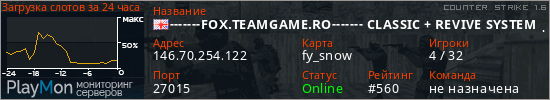 -------FOX.TEAMGAME.RO------- CLASSIC + REVIVE SYSTEM | VIP FREE | представлен в виде сервера кс 1.6. Из всех имеющихся на сайте модификаций игровых серверов, наша система поставила метку Classic сервера cs. В нашем мониторинге игровых серверов вы так же можете найти быструю навигацию по всем меткам - используйте главную страницу игры Counter Strike 1.6.