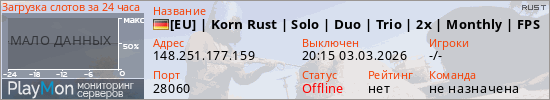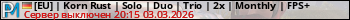[EU] | Korn Rust | Solo | Duo | Trio | 2x | Monthly | FPS+ представлен в виде сервера раст. Из всех имеющихся на сайте модификаций игровых серверов, вам может понравиться PvE серверы rust. А для быстрой навигации по всем меткам - используйте главную страницу игры Rust.