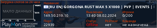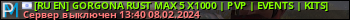 [RU EN] GORGONA RUST MAX 5 X1000 | PVP | EVENTS | KITS] представлен в виде сервера раст. Из всех имеющихся на сайте модификаций игровых серверов, наша система поставила метку Kits сервера rust. В нашем мониторинге игровых серверов вы так же можете найти где поиграть на PvP сервере раст.
