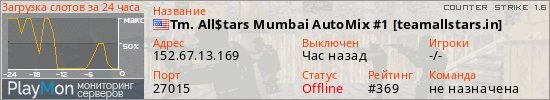 ID: 69767Ссылка: https://playmon.ru/server/152.67.13.169:27015
