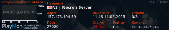 Общая информация ID: 67172 Ссылка: https://playmon.ru/server/157.173.104.59:27080 Адрес: 157.173.104.59:27080 Игроки: 0/8 Статус: Выключен Владелец: Не определён